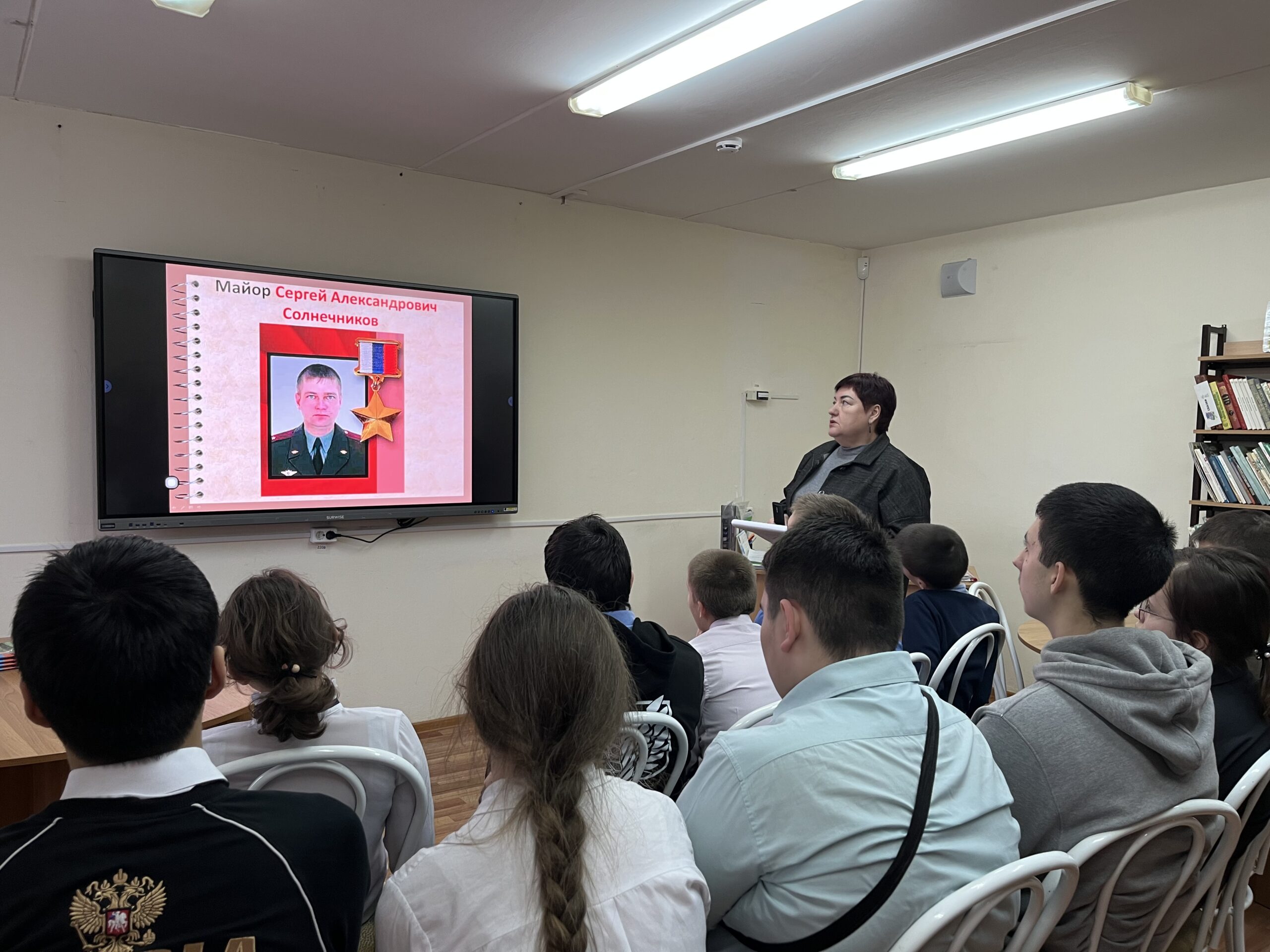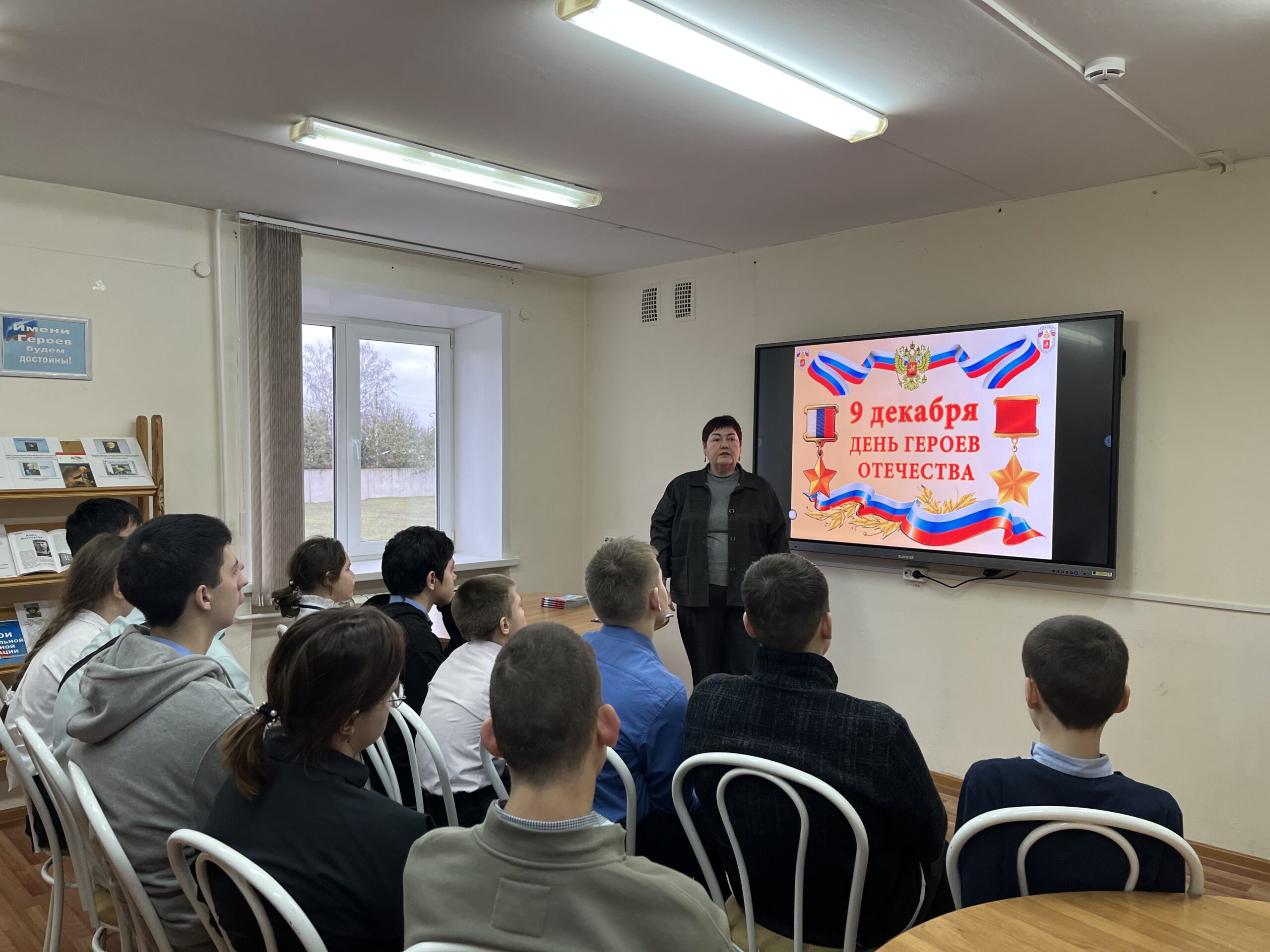 Каждый год 9 декабря наша страна отмечает особенную дату – День Героев Отечества. День, когда мы склоняем головы перед памятью павших и выражаем безмерную благодарность живым. В стенах школьной библиотеки прошел особый урок памяти. Мы собрались с ребятами, чтобы вспомнить тех, кто сражался за нашу свободу в годы Великой Отечественной войны. Говорили о героях, чьи жизни были отданы вдали от дома, в суровых условиях Афганистана и Чечни. О героях, которые сегодня в ходе специальной военной операции защищают интересы нашей страны, проявляя невероятную храбрость и самоотверженность.