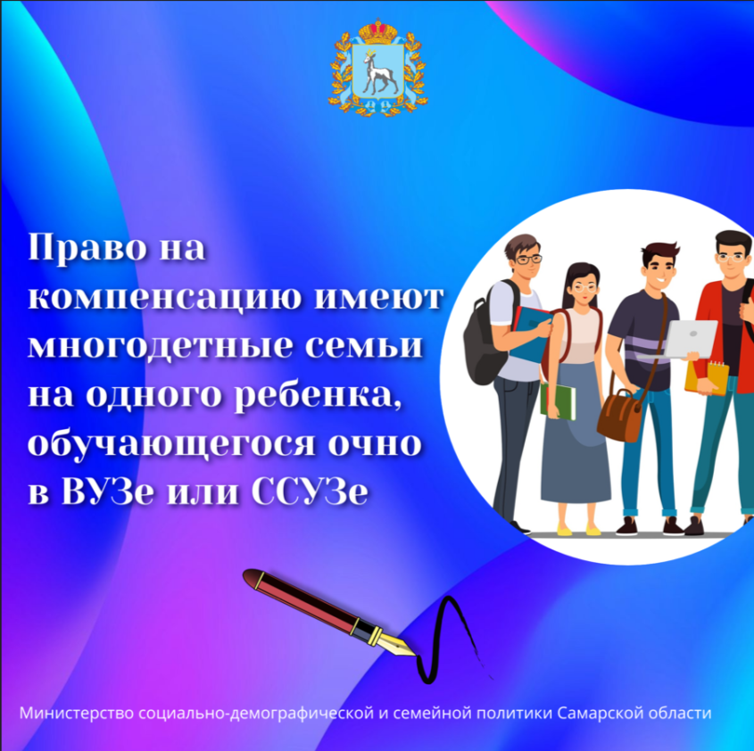 Министерство социально-демографической и семейной политики напоминает, что вы можете оформить компенсацию в размере 50% от стоимости обучения в ВУЗе или ССУЗе одного из детей в многодетной семье. Эта мера поддержки появилась в нашем регионе по инициативе Губернатора Вячеслава Федорищева и предоставляется в рамках национального проекта «Семья».