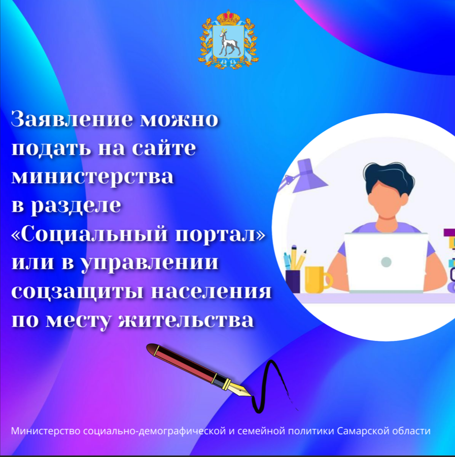 ✔️ Заявление можно подать как в управлении соцзащиты населения, так и на сайте министерства социально-демографической и семейной политики в разделе «Социальный портал»:  https://minsocdem.samregion.ru/portal/statement/create .